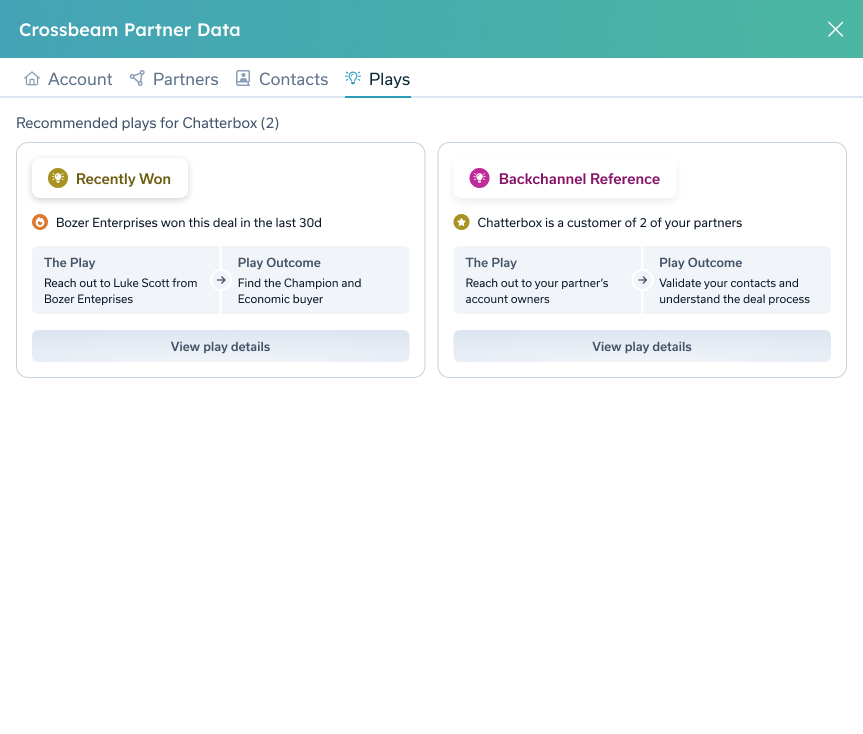 - Plays: Make every move count. Get actionable plays curated with the next best steps you can take to ensure your opportunities are marked as closed/won.
